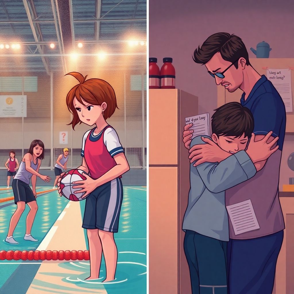 Пловчиха Лена с детства тренировалась у мамы. Жёсткие требования, ранние подъёмы, никаких «ну ладно, пропустим». В 14 лет Лена взбунтовалась: «Ты мне не мама, ты — тиран». Скандалы, хлопанье дверьми, слёзы в раздевалке. Казалось, семья трещит по швам.